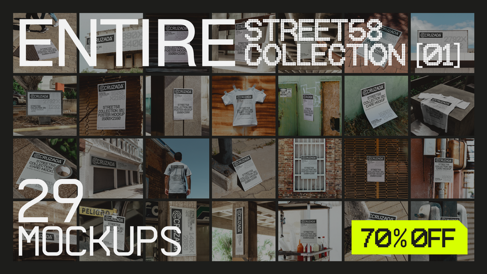 Street58 offers a collection of 29 urban-themed mockups inspired by the brutalist architecture of downtown Maracaibo, Venezuela, created in collaboration with Venezuelan photographer @emersonbravofoto. For a limited time, enjoy an exclusive 70% discount on our entire collection!